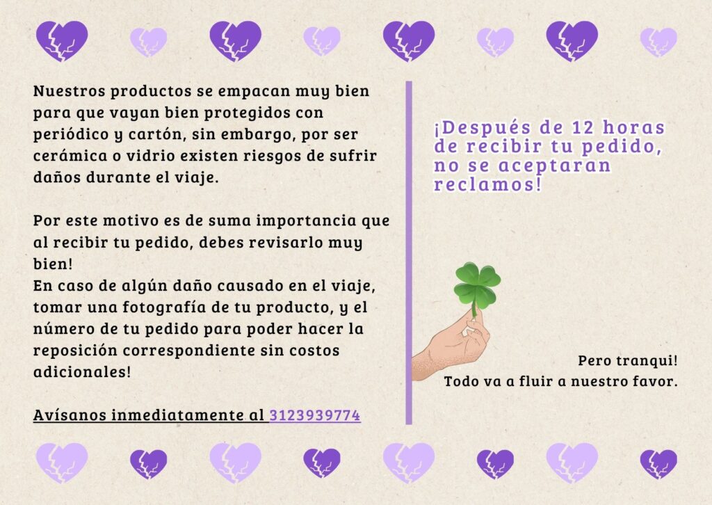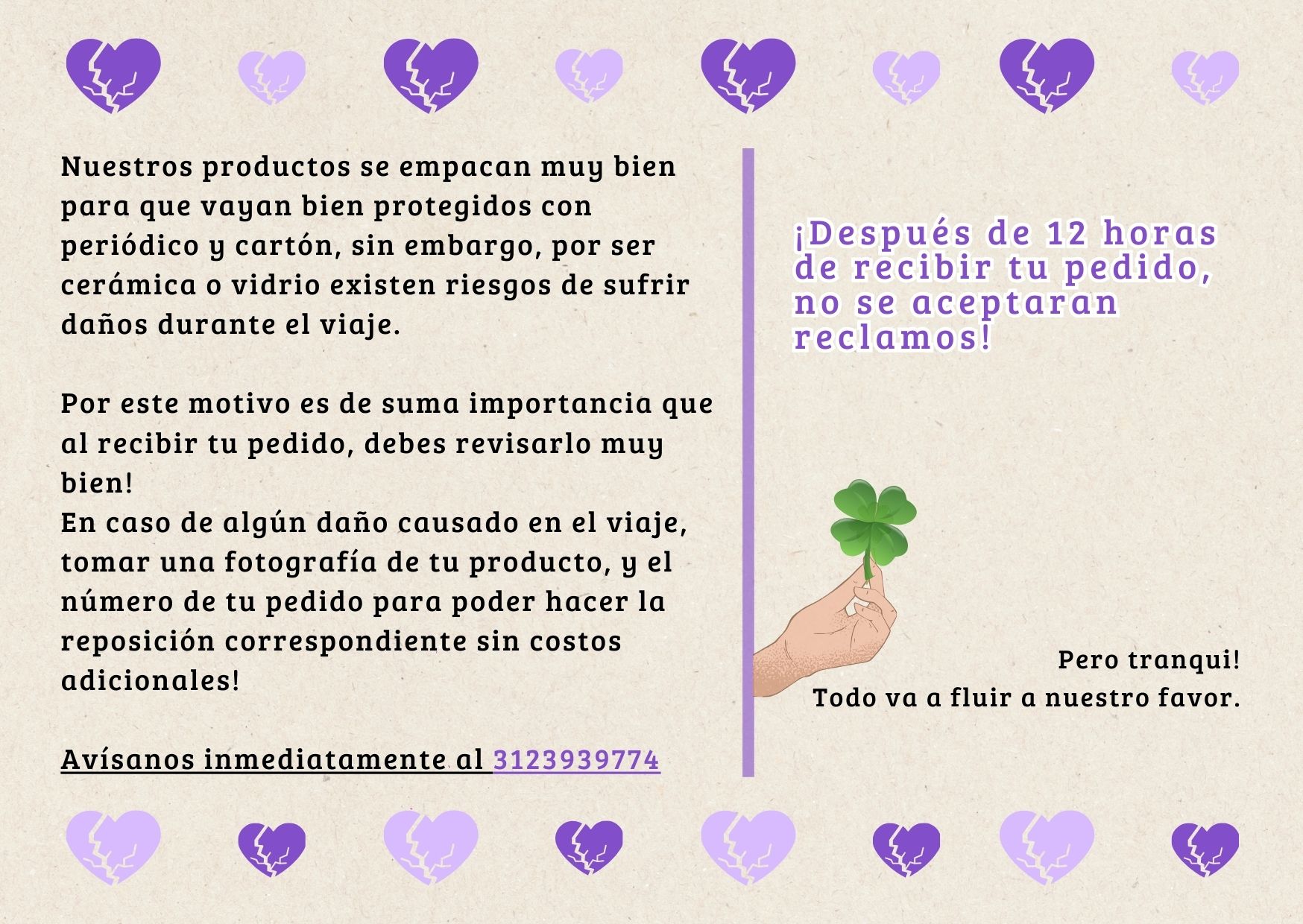 Nuestros productos son hechos 100% a mano. Envíos de 5 a 8 días hábiles