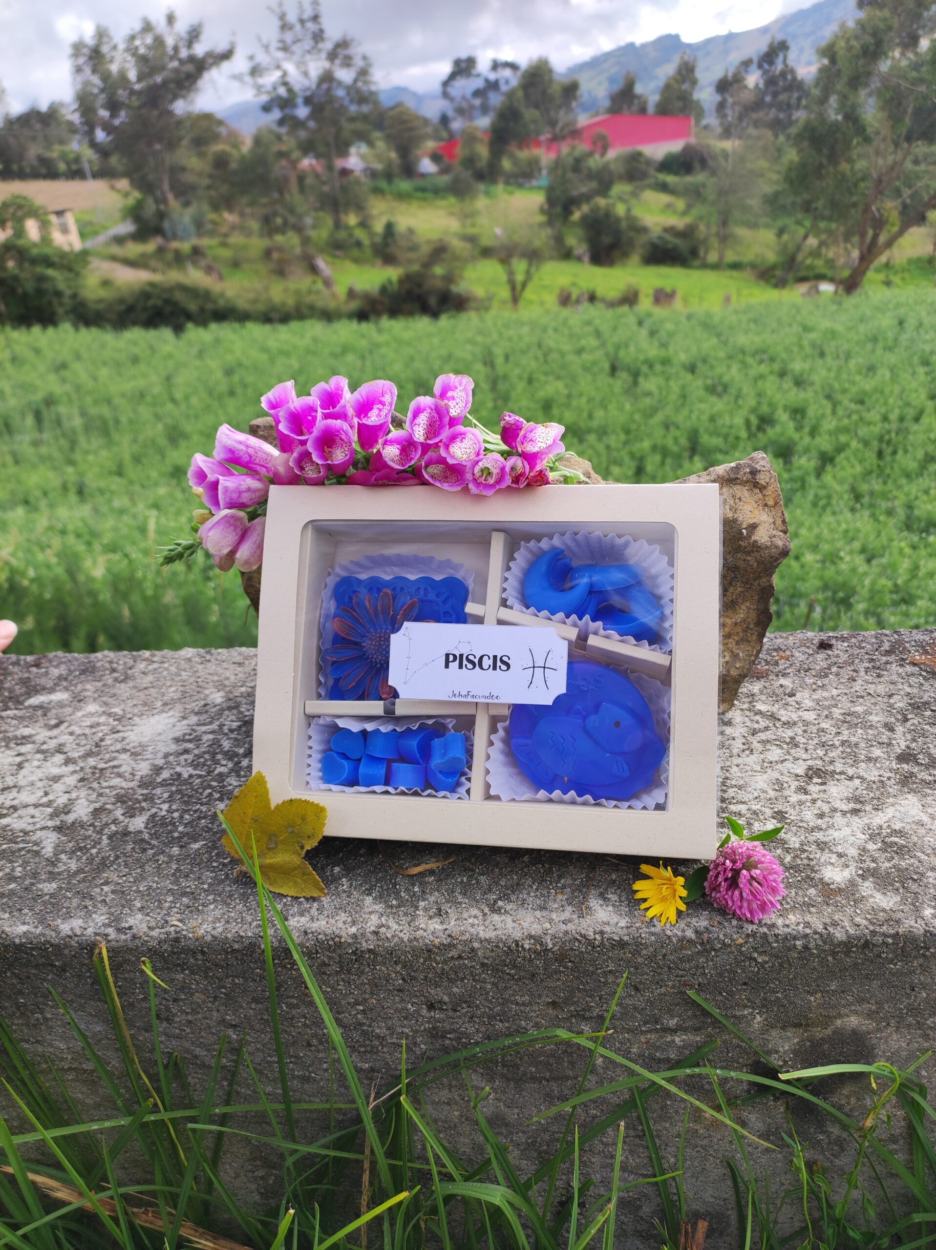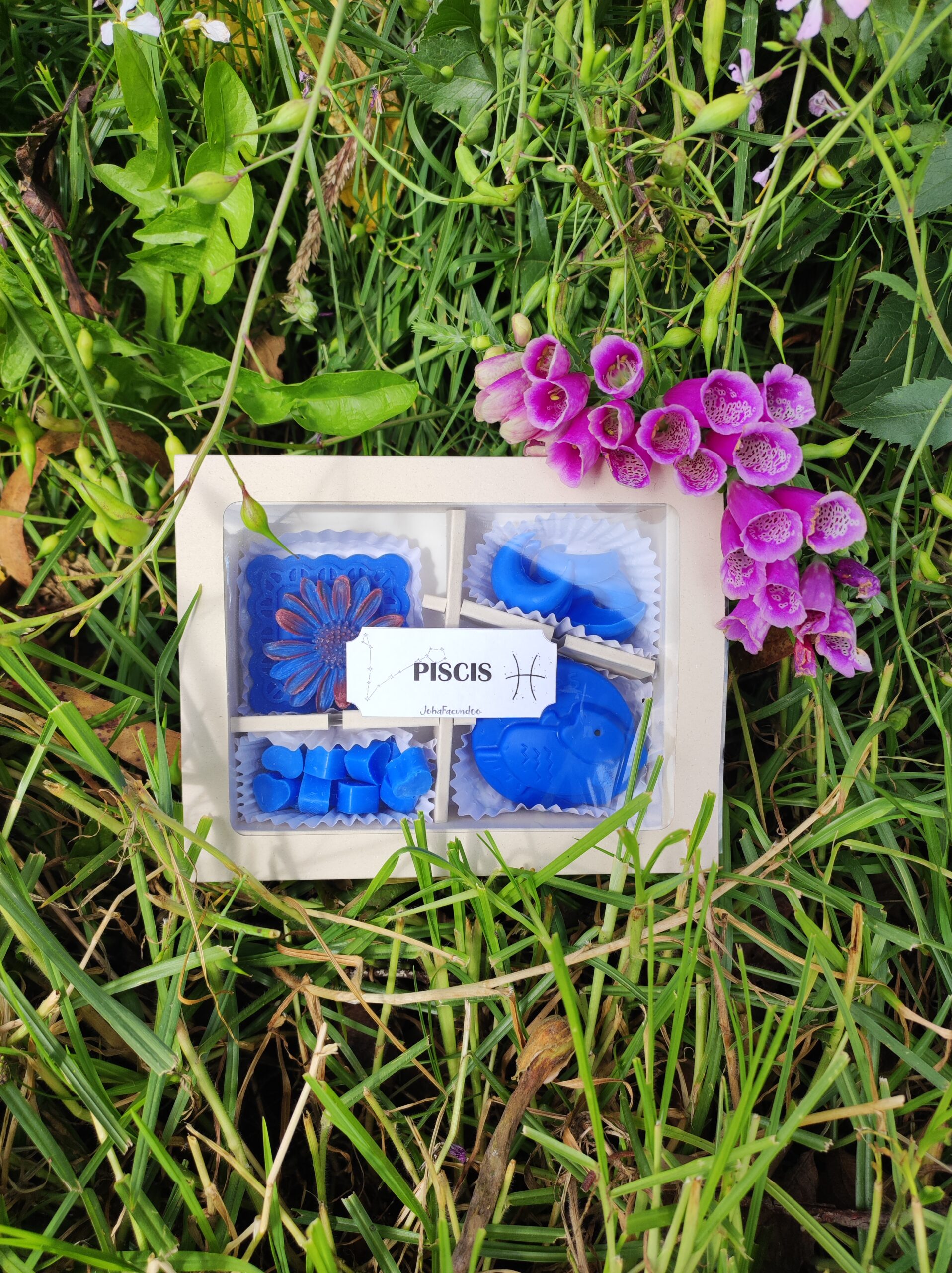 Caja de wax melts con forma de la figura zodiacal PISCIS